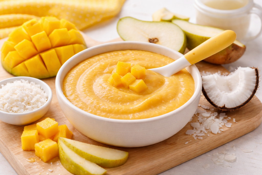 Papilla Refrescante de Mango, Pera y Coco
