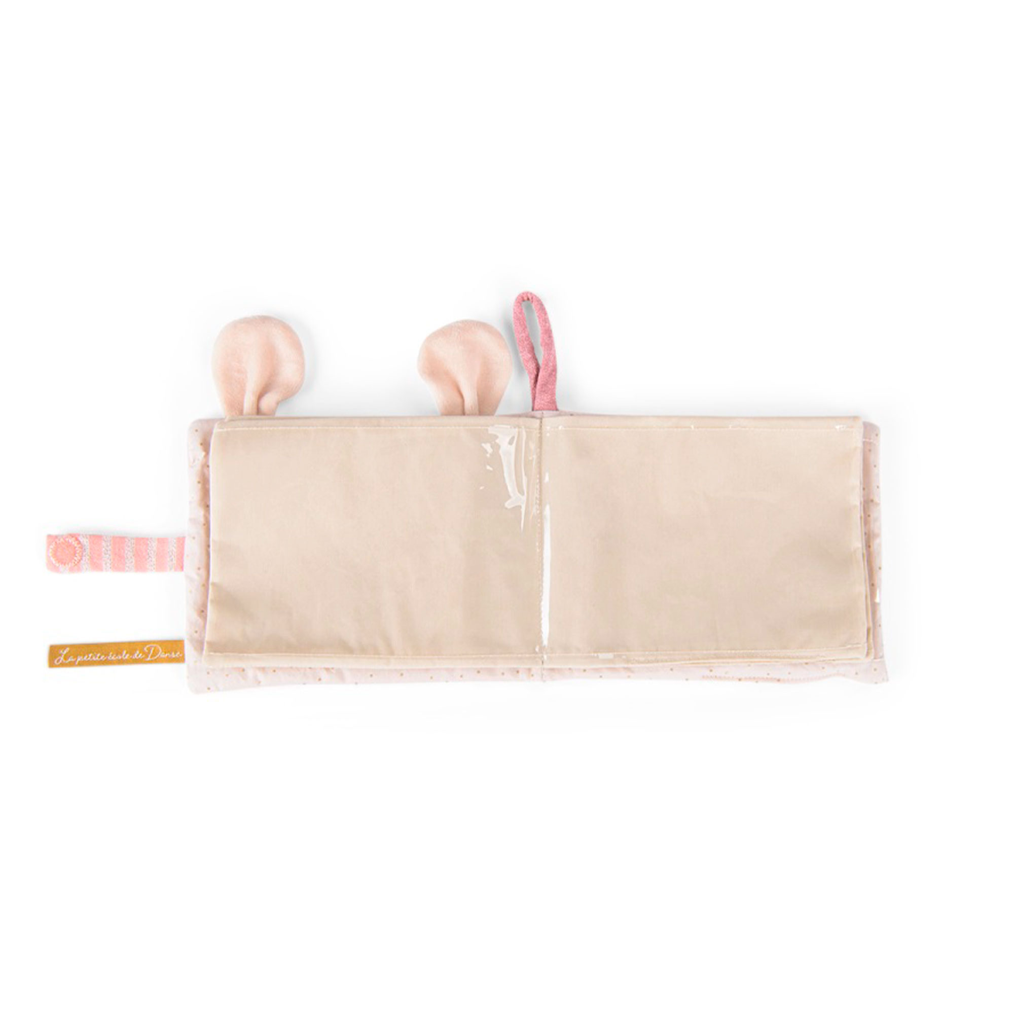 Álbum de fotos de ratón en terciopelo esponjoso, ¡con sus dos orejitas! Incluye 9 páginas para deslizar tus fotos, un cierre de velcro para cerrarlo y un enlace para llevarlo a cualquier parte. Se puede bordar con el nombre del bebé. Fabricado con un 50% de plástico reciclado.