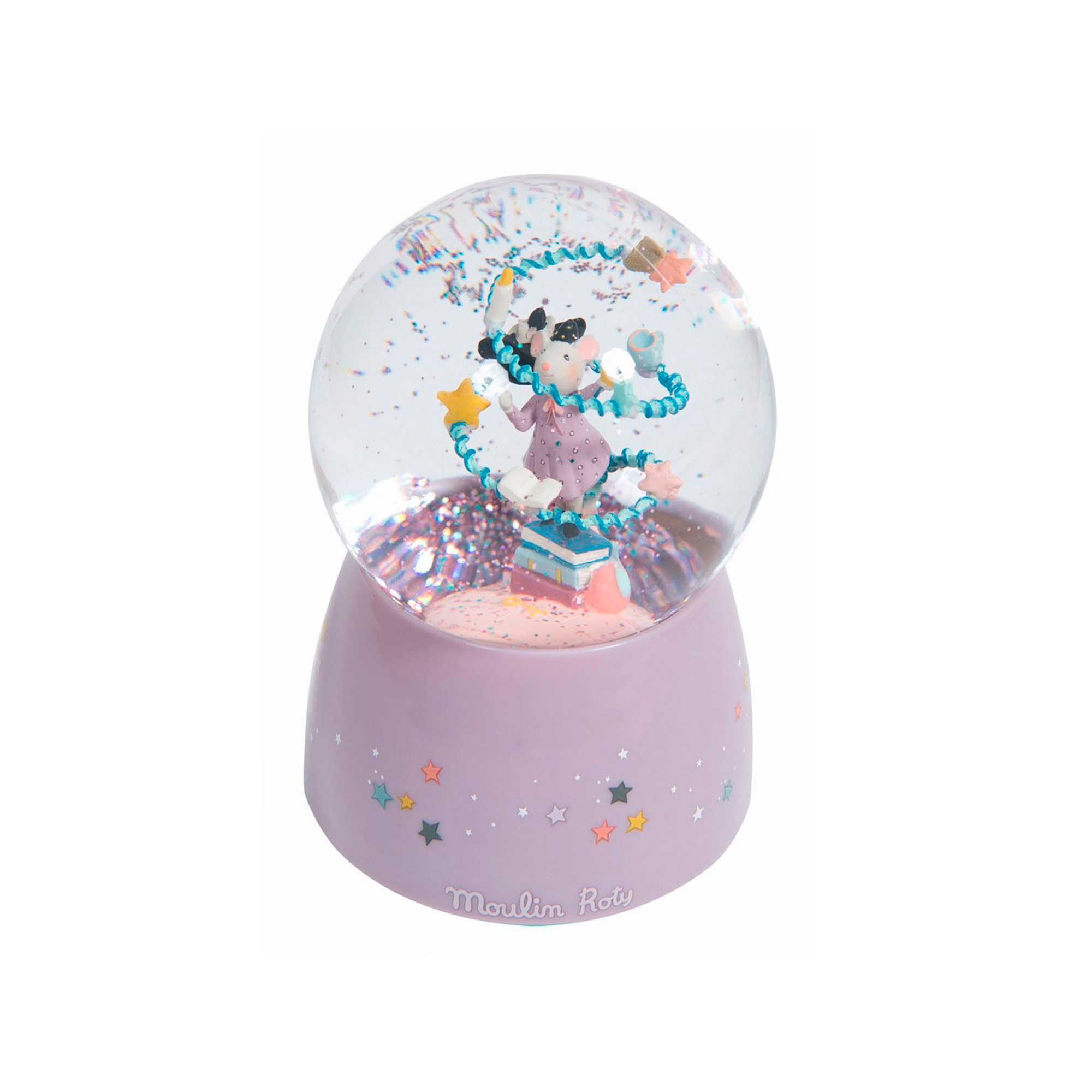 Esta magnífica bola de nieve violeta que, gracias a una pequeña tecla, reproduce música, hará las delicias de su hijo. Bajo una lluvia de purpurina y estrellas, el ratón aprendiz de bruja practica magia con su hijo. Este regalo hará soñar a su hijo y encontrará rápidamente su lugar en la habitación de su pequeño.