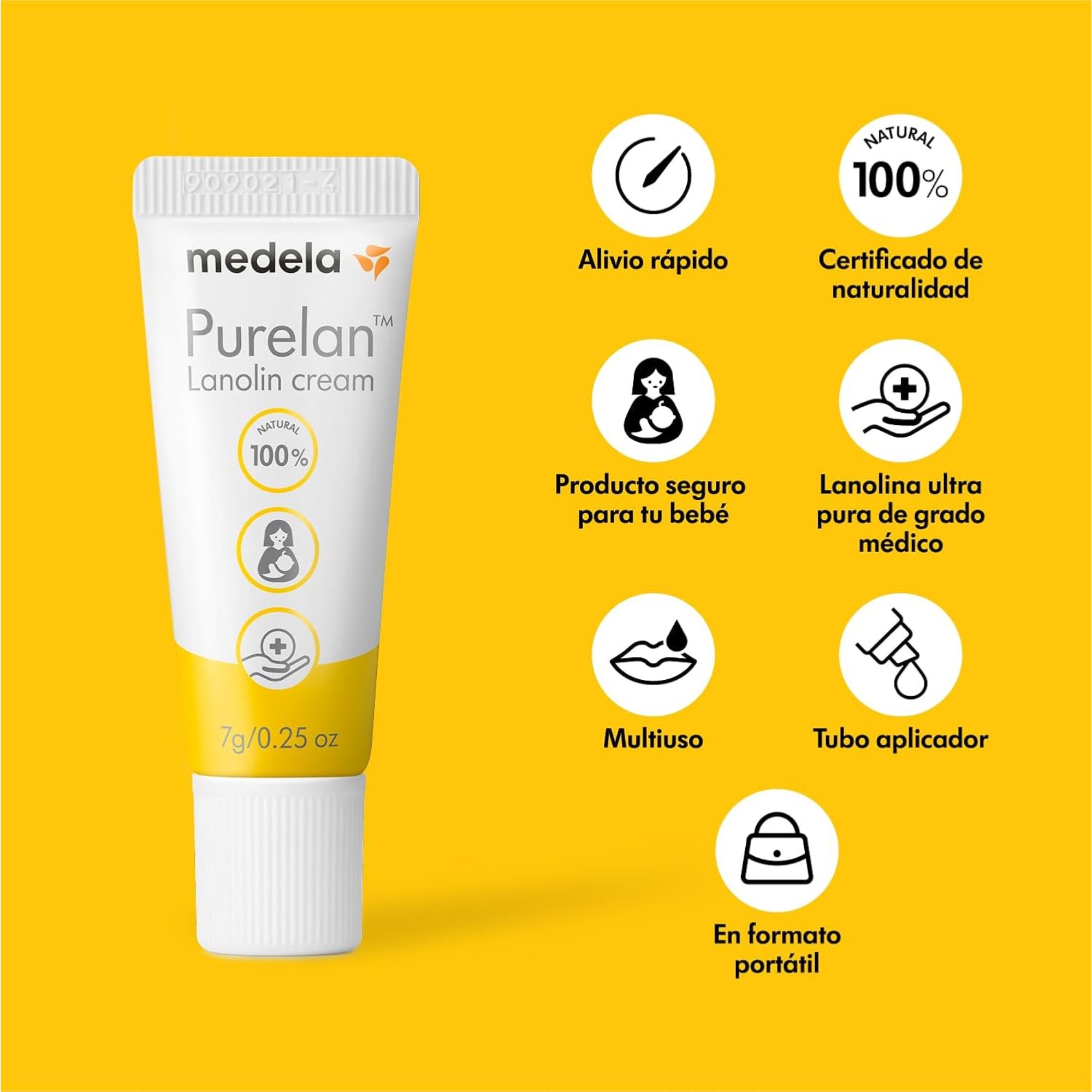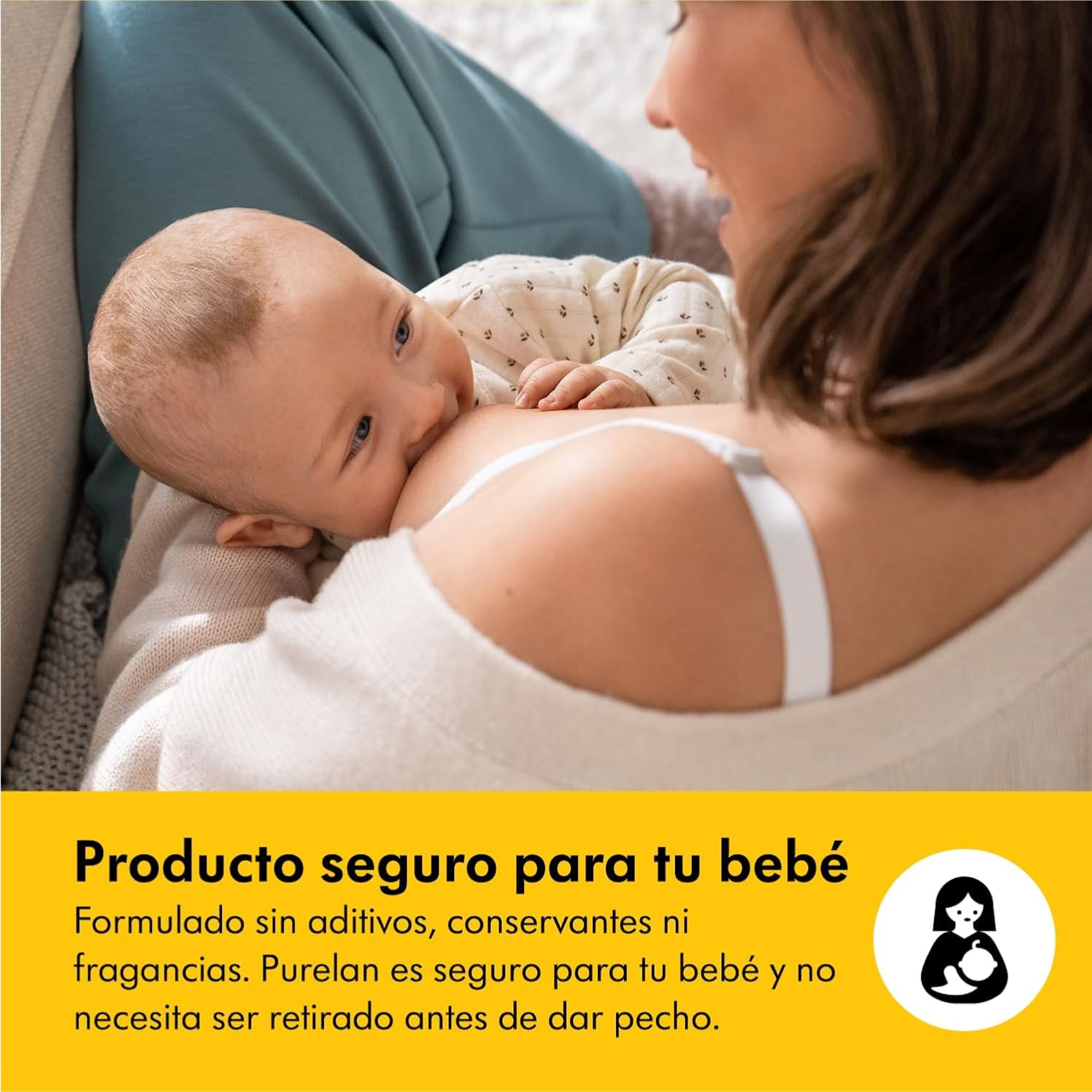 Durante los primeros días y semanas en los que se da el pecho con frecuencia, muchas mujeres experimentan dolor en los pezones y sequedad en la piel. La crema de lanolina Purelan™ te ofrece un alivio rápido para los pezones sensibles y la sequedad de la piel. 1-4