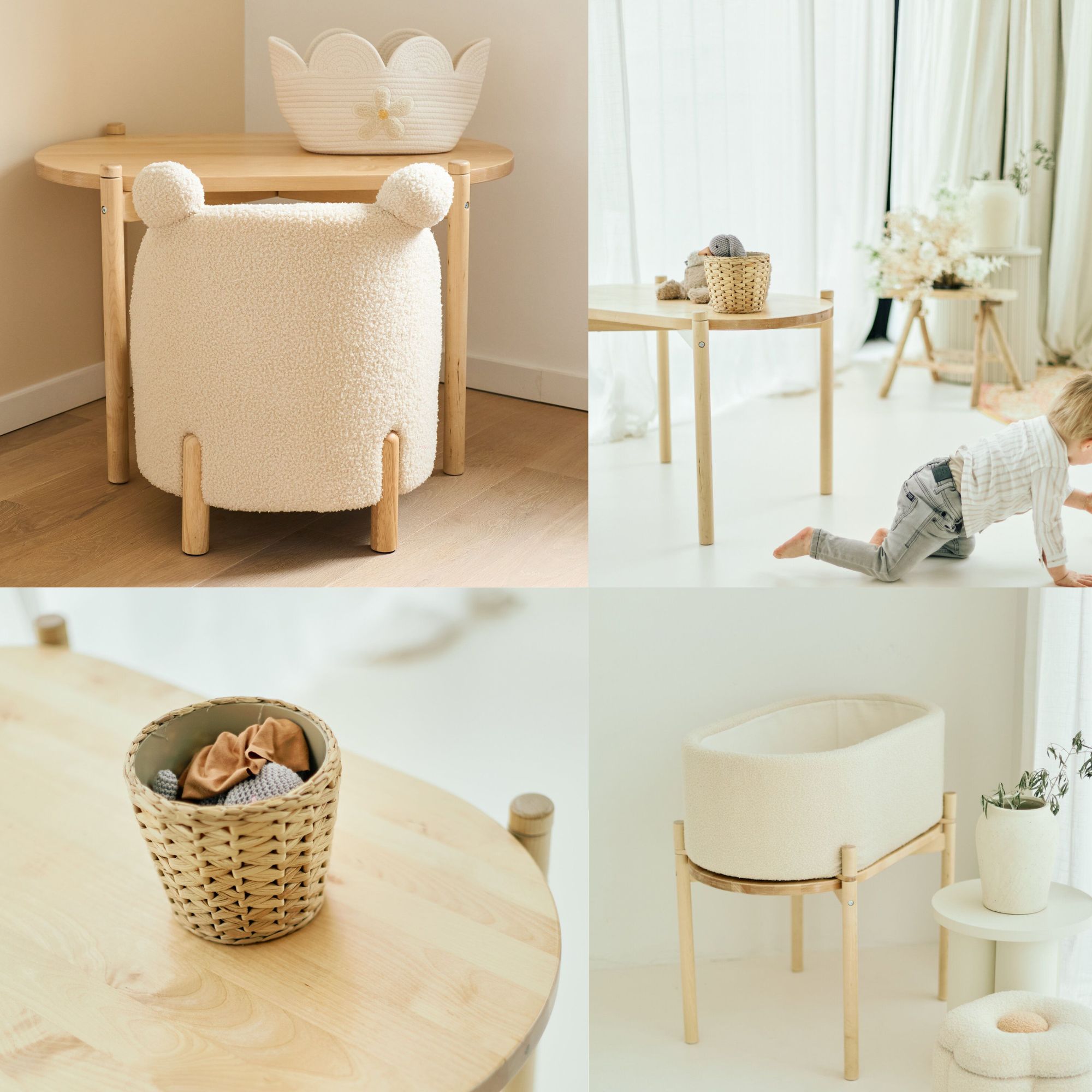 La cuna y mesa infantil 2 en 1 Teddy se transforma fácilmente de una acogedora cuna para tu recién nacido a una práctica mesa infantil, brindando años de comodidad y utilidad.