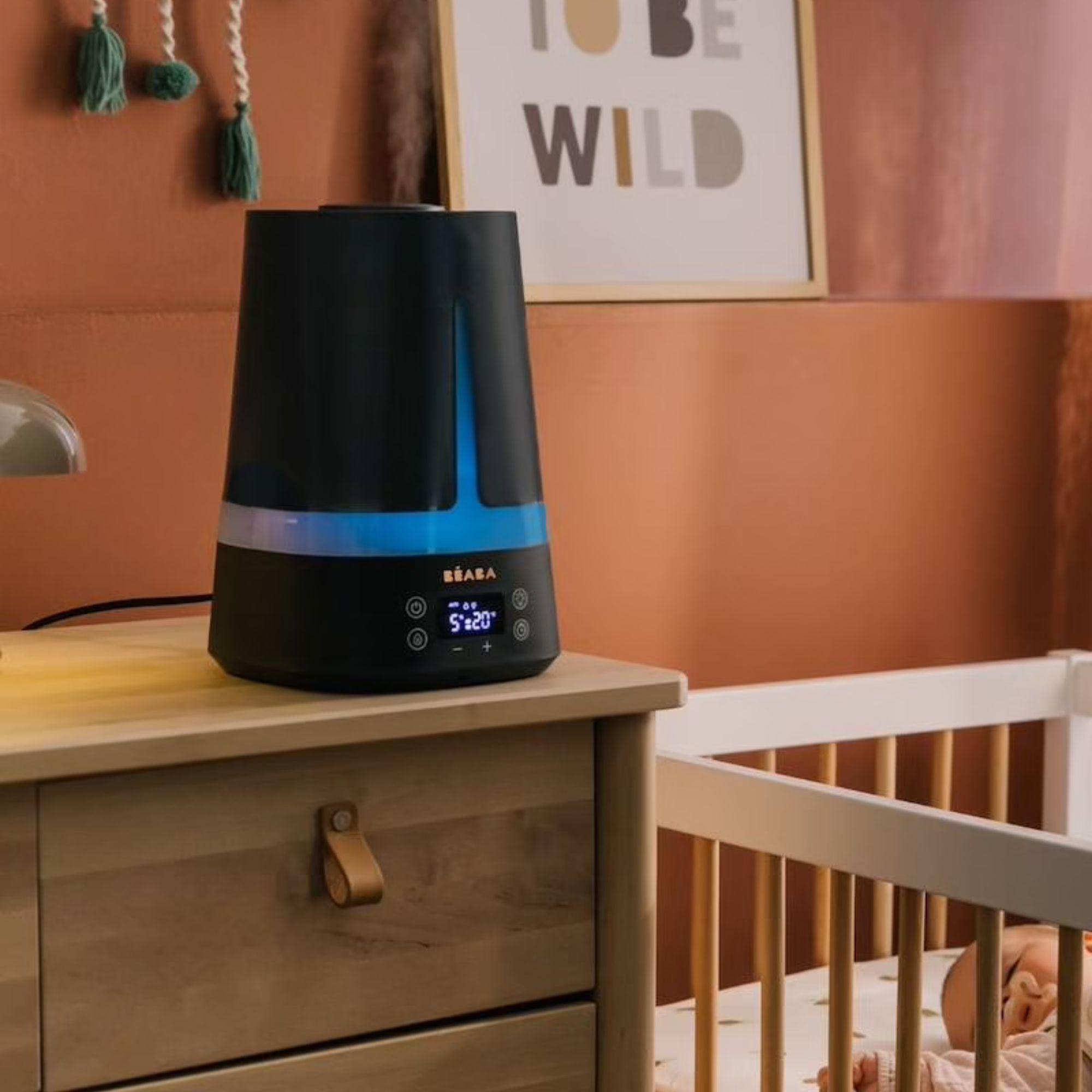 El Humidificador Zen Air está diseñado para proporcionar un entorno cómodo y saludable para su bebé. Los bebés son a menudo propensos a resfriados, y para ayudarles a respirar mejor, sus habitaciones deben estar adecuadamente humidificadas. El Humidificador Zen Air regula la humedad de la habitación, asegurando un confort óptimo para su hijo. Con su autonomía de 27 horas, se puede usar durante toda la noche sin preocupaciones. Puede elegir entre dos modos de funcionamiento, automático o manual, para ajustar la humedad según sus necesidades. Además, la boquilla ajustable de 360° permite dirigir la niebla donde se desee. El Humidificador Zen Air también está equipado con una luz nocturna con 7 colores y 3 niveles de brillo, creando un ambiente relajante para su bebé. Su pantalla LED y botones táctiles facilitan su uso, mientras que el tanque removible permite un llenado y limpieza simples.