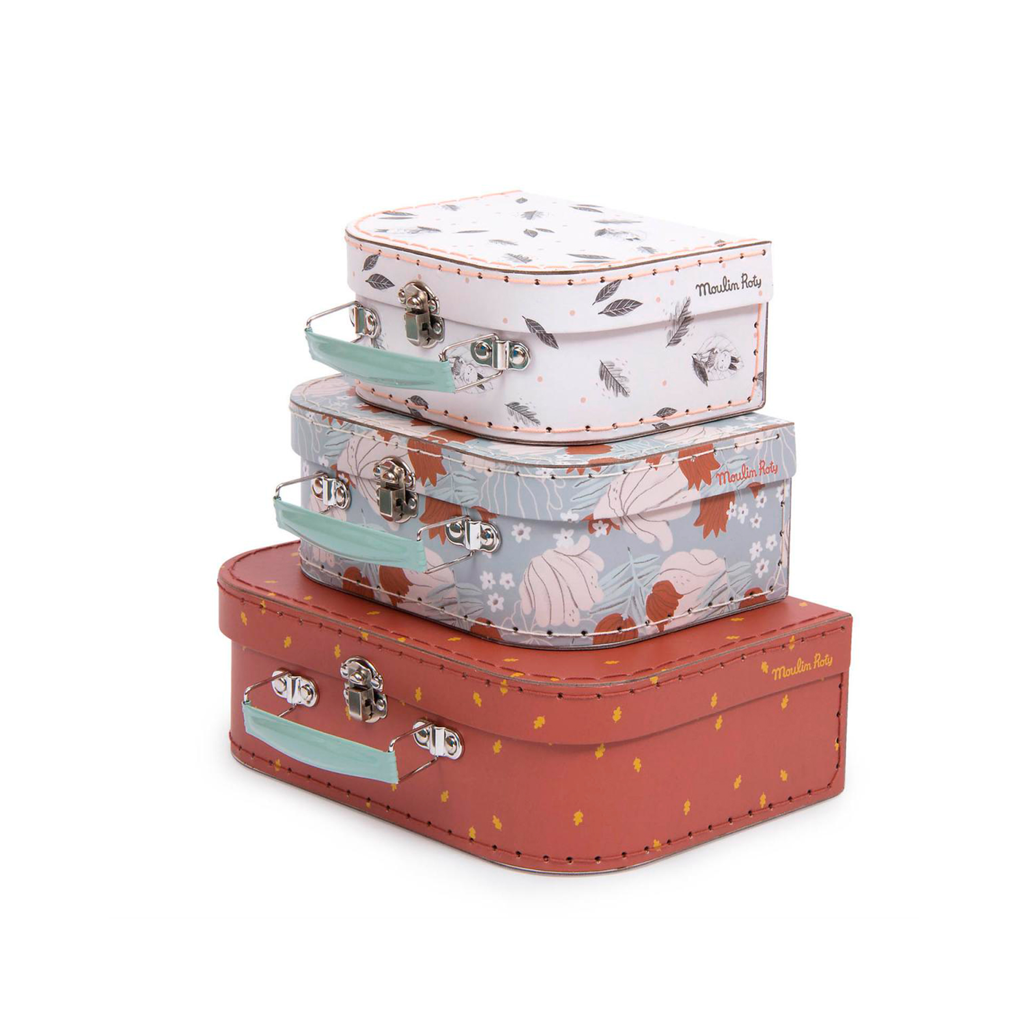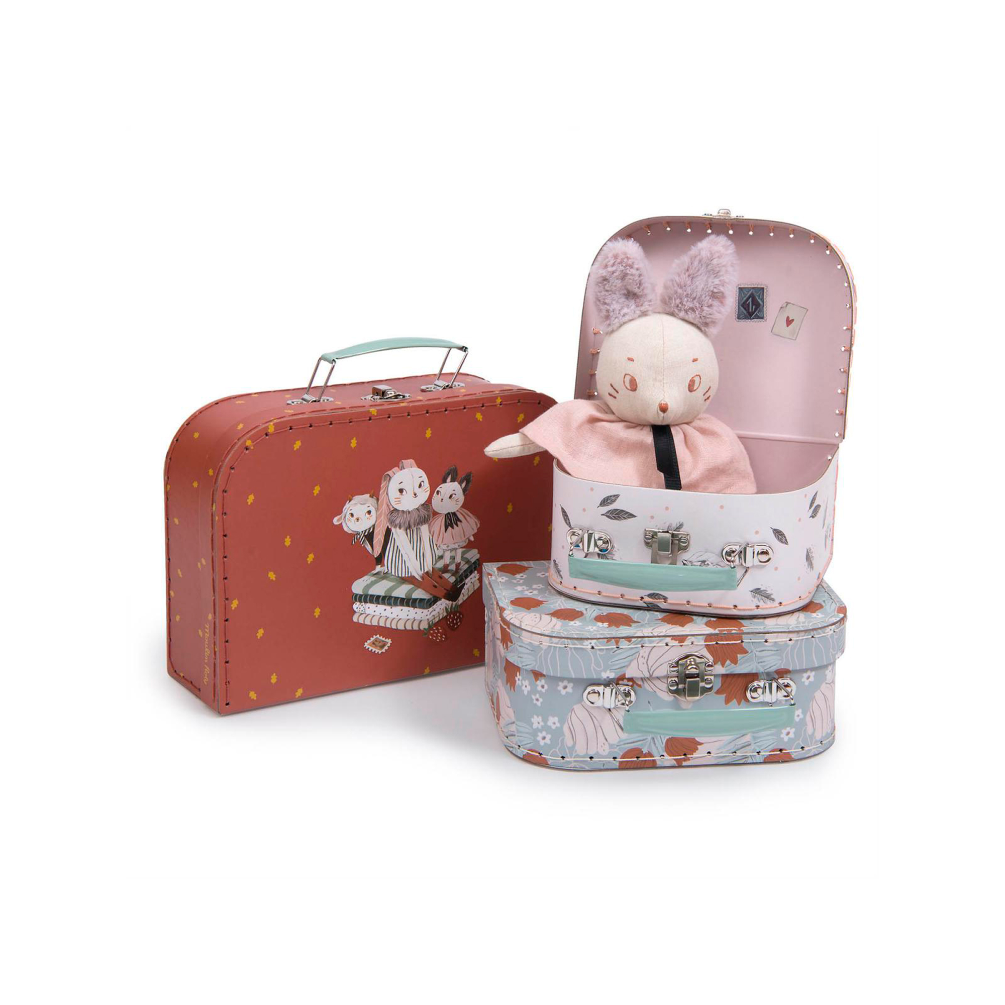 Este juego de maletas Moulin Roty presenta tres maletas diferentes en varios tamaños y diseños. Ideal para las aventuras de tu pequeño o para guardar sus juguetes y juegos favoritos.