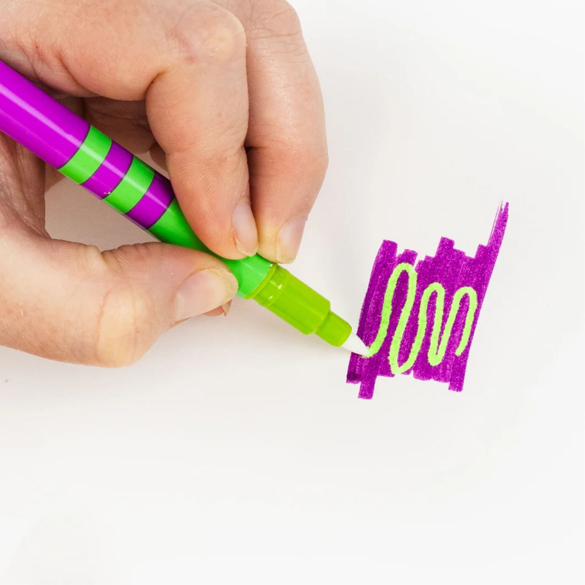 Estos increíbles marcadores tienen doble punta: un marcador de color regular en un extremo y una punta especial que cambia de color en el otro. Los niños que buscan sorpresas coloridas pueden transformar mágicamente sus obras de arte con patrones y efectos vibrantes gracias a esta ingeniosa tecnología.