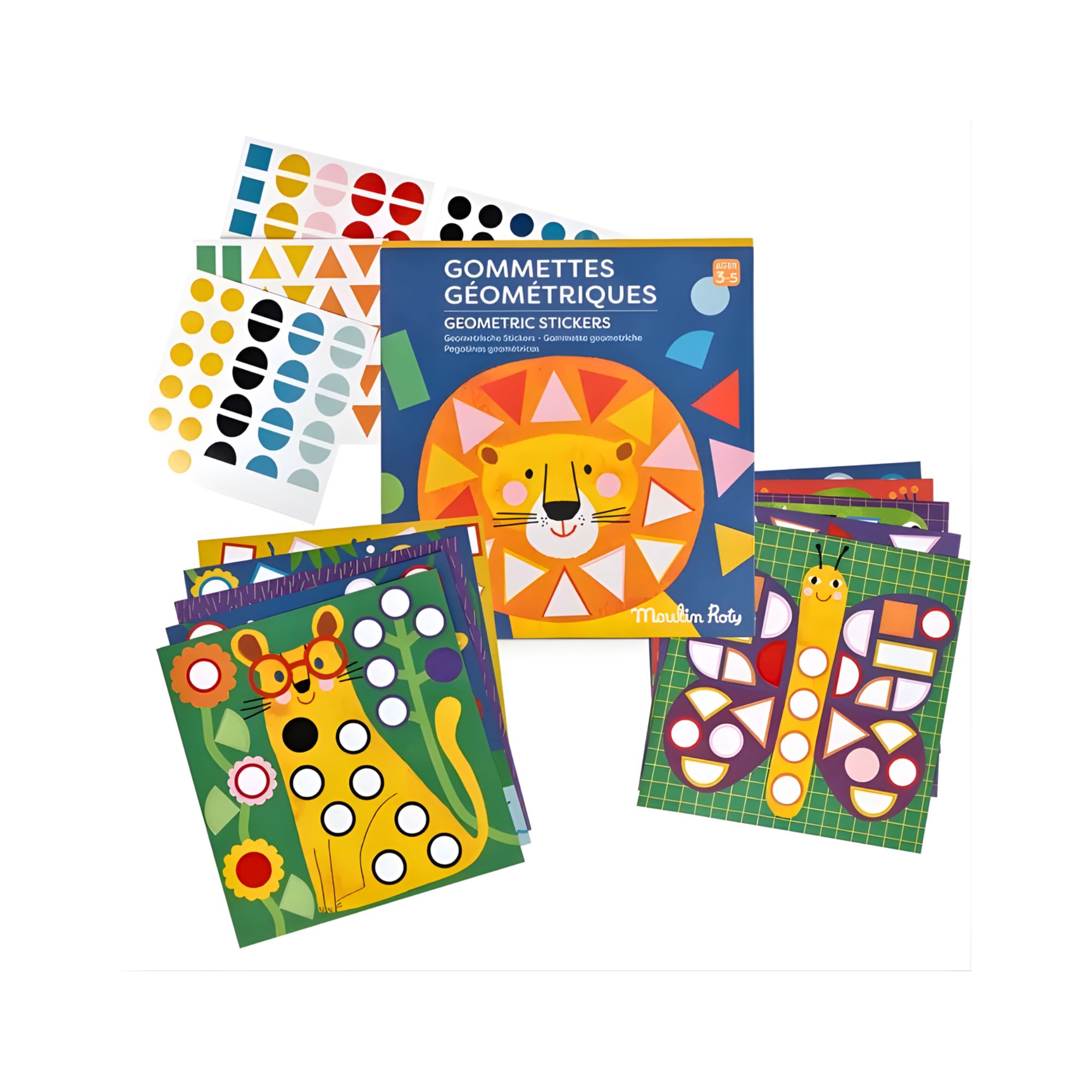 Descubre las increíbles Pegatinas Geométricos Les Toupitis de Moulin Roty, una actividad creativa diseñada especialmente para niños a partir de 3 años. Este conjunto incluye 10 ilustraciones coloridas y divertidas, inspiradas en la encantadora colección Les Toupitis, que los pequeños podrán completar con las 300 pegatinas geométricas incluidas.