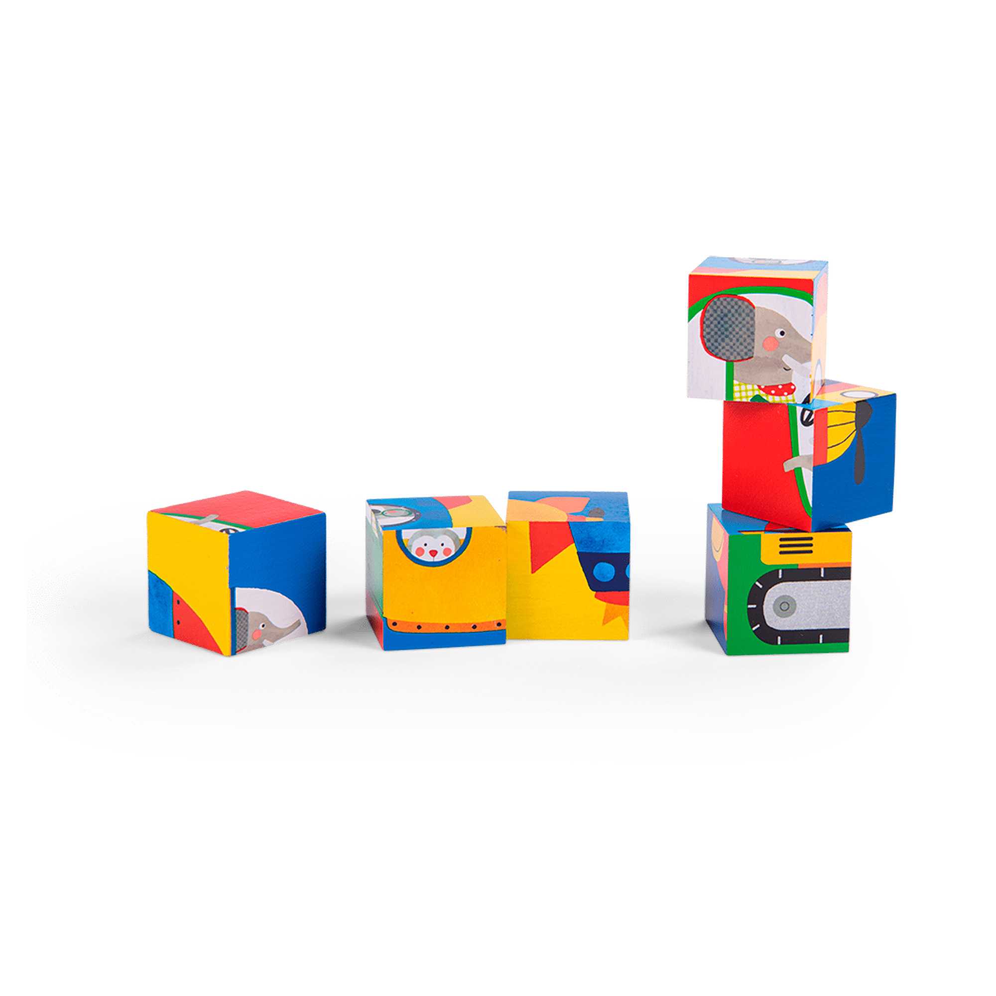 ROMPECABEZAS DE 6 CUBOS DE MADERA DE COLORES COLECCIÓN LES POPIPOP